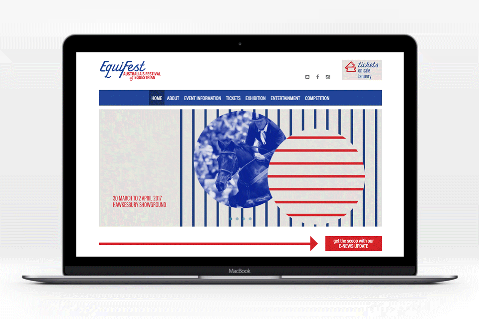 From a logo through to a strong colour palette and graphic treatments, the look and feel of this event was designed to stand out in the crowded and traditionally photograph-heavy equestrian market.